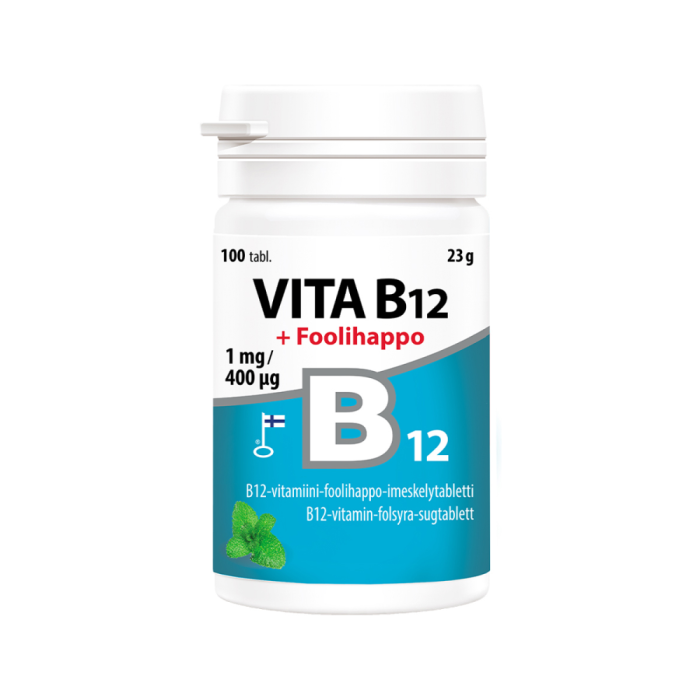 Vita B12 + foolihappo B12-vitamiini 1 mg, foolihappo 400 mikrog 100 tabl